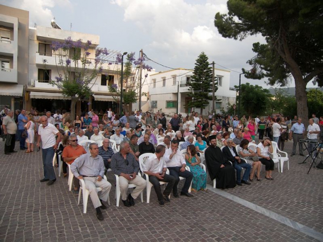Την ομιλία ξεκίνησε ο Ιστορικός κ.Χατζηβασιλείου ο οποίος τόνισε μεταξύ άλλων ότι: «Σήμερα το νησί μας τιμά με την υπέροχη αυτή γλυπτική σύνθεση του καλού και εξαίρετου συμπατριώτη μας , Αντώνη Χατζημιχαήλ, το πιο δημοφιλές και πολυσύνθετο πρόσωπο της Ελληνικής μυθολογίας τον Πανάρχαιο ήρωα Ηρακλή , που εμφανίζεται πάνω σε αυτό το βάθρο να παλεύει με τον ρωμαλέο βοσκό τον Ανταγόρα... Στην συνέχεια τονίζει ο κ.Χατζηβασιλείου οτι άλλη μια σπουδαία προτομή του Αντωνάκη του Χατζημιχαήλ είναι η προτομή του Ιπποκράτη την οποία η νέα Δημοτική Αρχή θα παρακαλούσα σε μια περίβλεπτη θέση να την τοποθετήσει ώστε να αναδεικνύεται έτσι και η σημασία που έχει τονίζει για εμάς τους Κωους ....