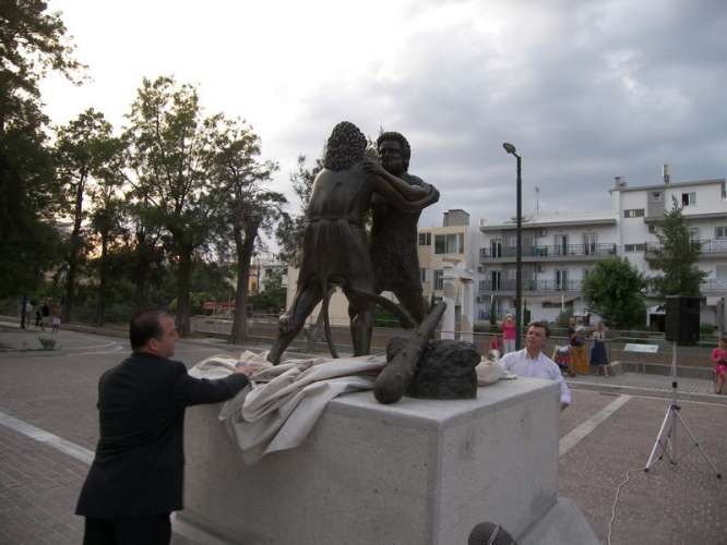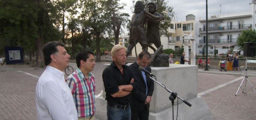 τοποθέτησε τη γλυπτική σύνθεση με τίτλο «Η μυθική πάλη Ανταγόρα & Ηρακλή», την Κυριακή στην πλατεία Ανταγόρα. Παρουσία πολύ κόσμου, σε ένα πολύ ζεστό κλίμα έγιναν τα αποκαλυπτήρια της γλυπτικής σύνθεση με τίτλο «Η μυθική πάλη Ανταγόρα & Ηρακλή», το οποίο δημιούργησε ο Αντώνης Χατζημιχαήλ.
