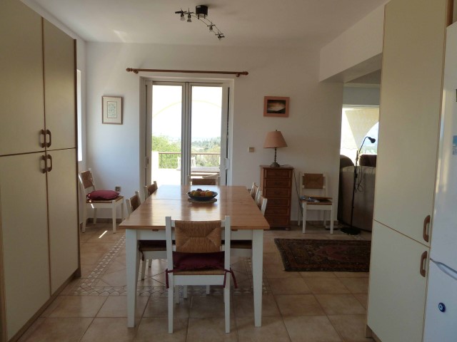 Η ιδιοκτησία είναι μεμονωμένη και σχεδιάστηκε σε δυο επίπεδα. Βρίσκεται σε μια ανυψωμένη θέση και επομένως δίνει στην ιδιοκτησία την θεά της περιβάλλουσας περιοχής, νησιά, θάλασσα, βουνά και τα παράλια της Τουρκίας. Η κύρια είσοδος στη βίλα ανοίγει προς ένα φουαγιέ που δίνει την πρόσβαση στην περιοχή σαλονιών, τραπεζαρίας με τζάκι και A/C, και ακολουθεί κατευθείαν στις περιοχή της κουζίνας. Η κουζίνα έχει επίσης την αφθονία του φωτός από τα παράθυρα και τις πόρτες. Το ακίνητο έχει θέρμανση πετρελαίου και ηλιακό. Από το σαλόνι με τα μεγάλα παράθυρα έχουμε μια θέα προς θάλασσα και βουνών. Ένα από αυτά που κάνη το ακίνητο να ξεχωρίζει είναι η πολύ μεγάλες Βεράντες με θέα το Αιγαίο Πέλαγος. Το ακίνητο αποτελείται από πολλά υπνοδωμάτια και άνετους χώρους. Το κάτω δεύτερο επίπεδο είναι αυτόνομο με δική του είσοδο. Ο εξωτερικά περιβάλλοντος χώρος αποτελείται από πανέμορφους κήπους, και δέντρα. Αυτό που κάνη το Ακίνητο, να είναι ξεχωριστό είναι η πολλές φυσικές ομορφιές, η πανοραμική θέα, και τα τοπία της περιοχής.